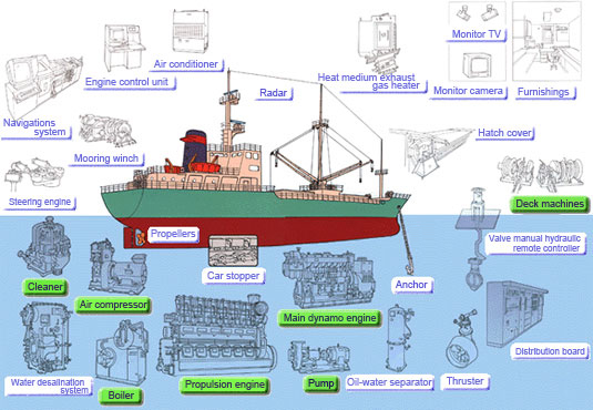 The Marine Machinery Group and the Tokyo Marine Group distribute ships, propulsion engines, auxiliaries and other marine products and components and also supplies various advanced automation systems for ships.